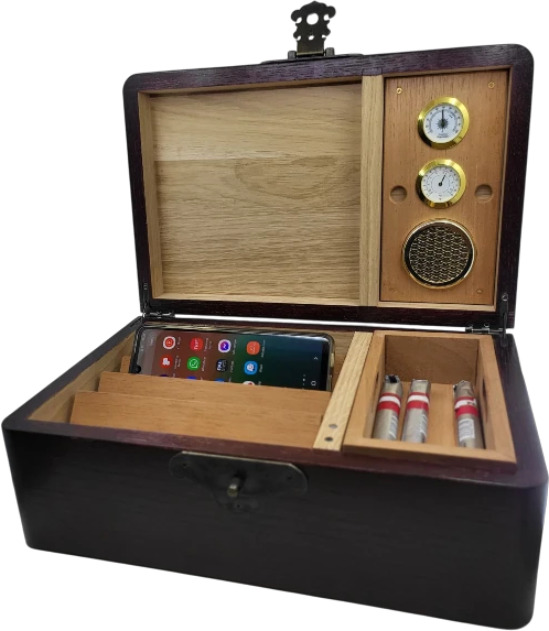 KOL CB4 is a unique cigar box system, specially designed to protect confidential internal conversations from cell phone recording and eavesdropping. This innovative solution neutralizes the microphones of up to 4 mobile phones placed inside the box, by generating an ultrasonic sound which blocks any possability of recording the conversation inside the room by one of the participants as well as cellular interception by outside parties.