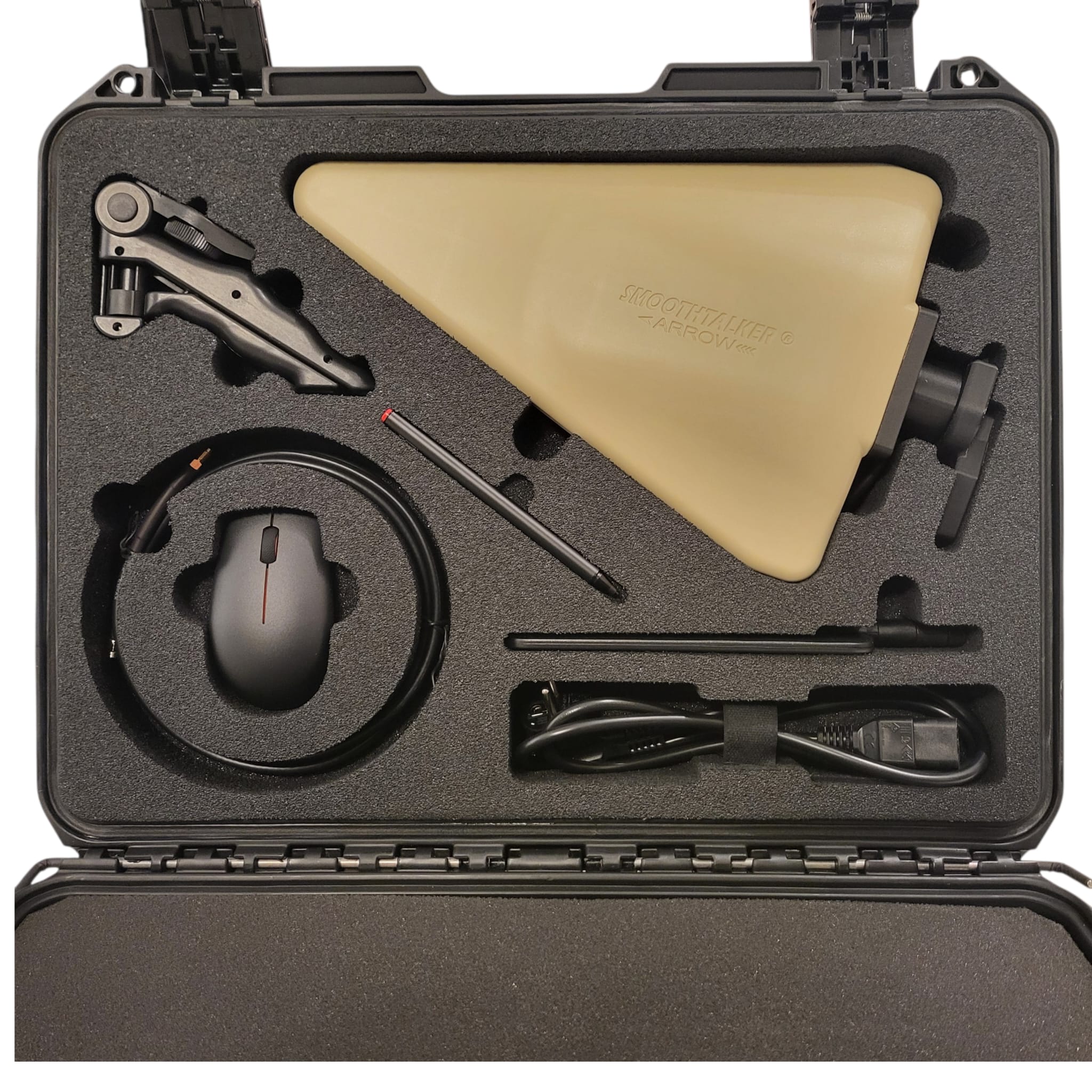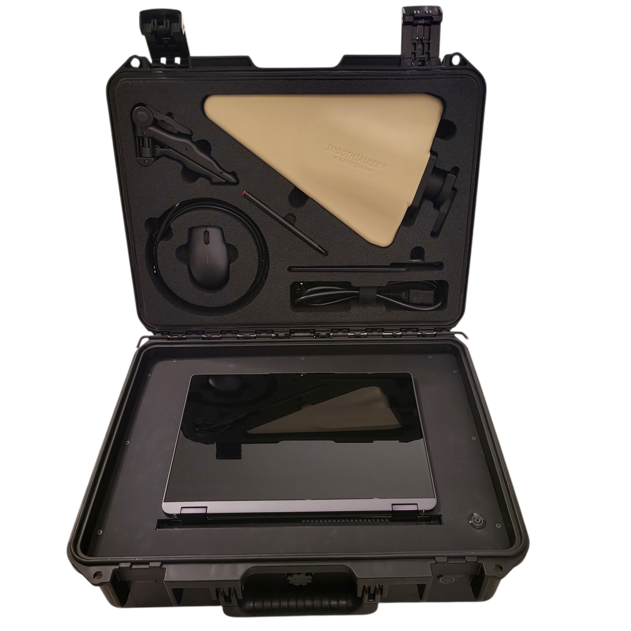 The YRI 20G is installed in a rigid Pelikan case with total weight of 11.5 kilograms. It has a 13.3-inch touch screen, 2 USB connectors (3.0 / C), Ethernet connector (RJ45), multi antennas set, Omni / Directional, VLC / IR / ultraviolet probe, as well as other accessories included in the kit. The system works through a direct connection to the local electricity or through a battery that provides power about 3 hours of independent operation.